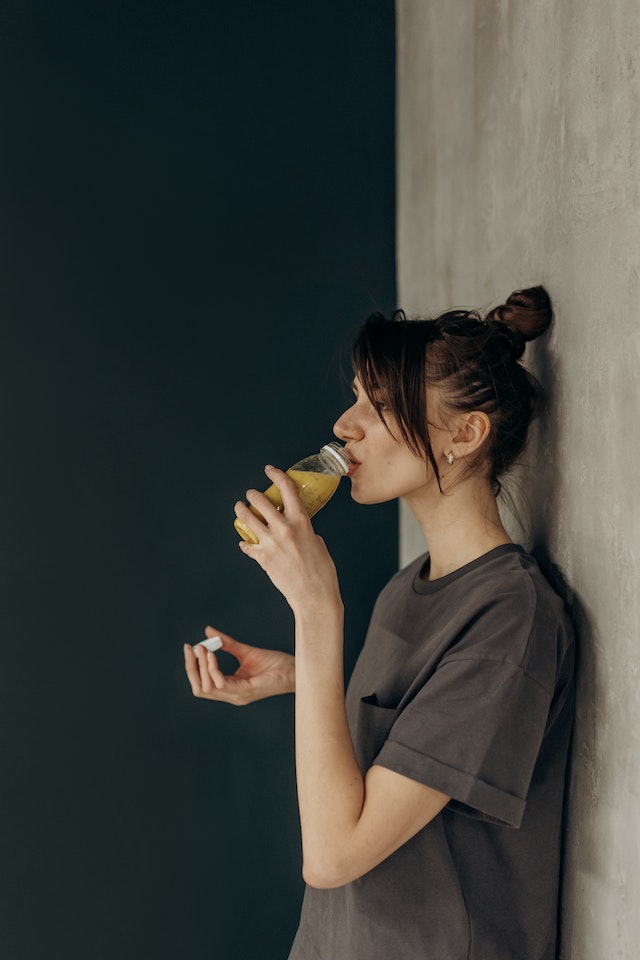 Photo by Mikhail Nilov: https://www.pexels.com/photo/woman-drinking-a-healthy-juice-6740775/