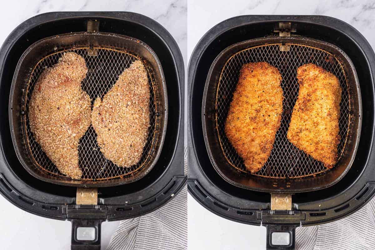 Place your coated chicken cutlets in the air fryer basket, ensuring they don’t overlap. Cook for about 12-15 minutes, flipping them halfway through. Your cutlets should be golden brown and have an internal temperature of 165°F (74°C).
